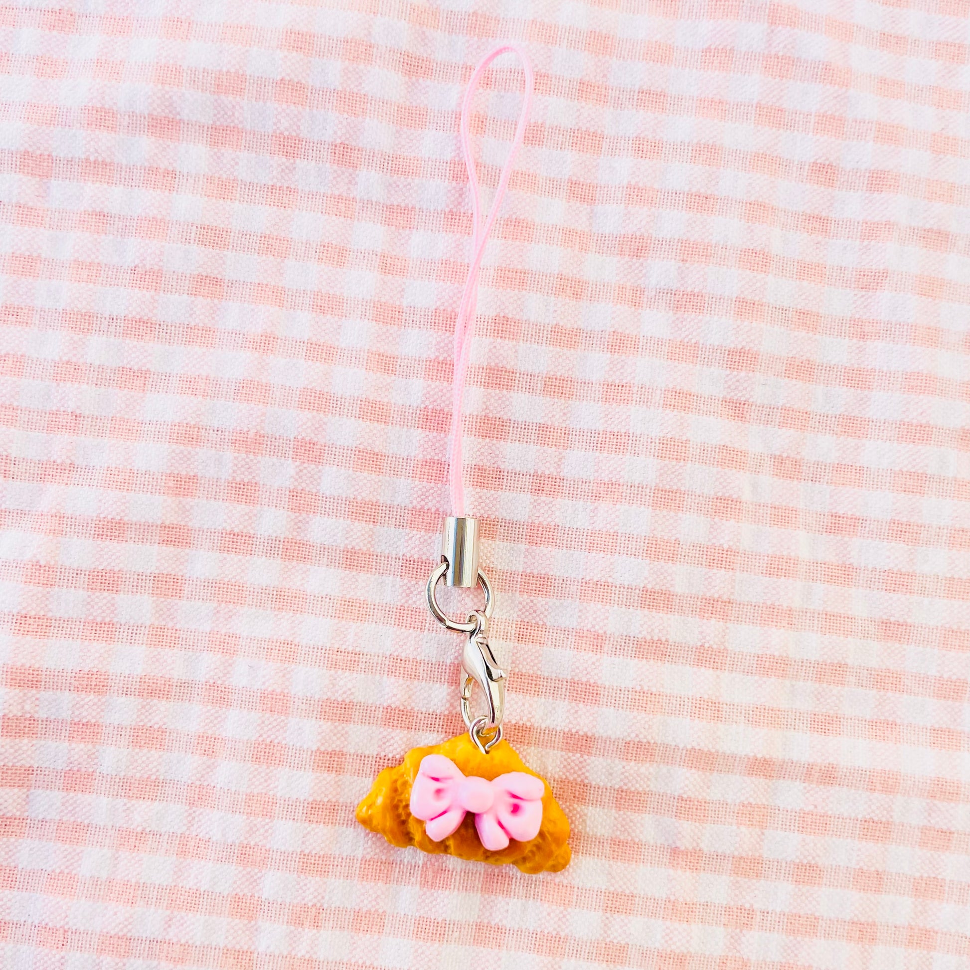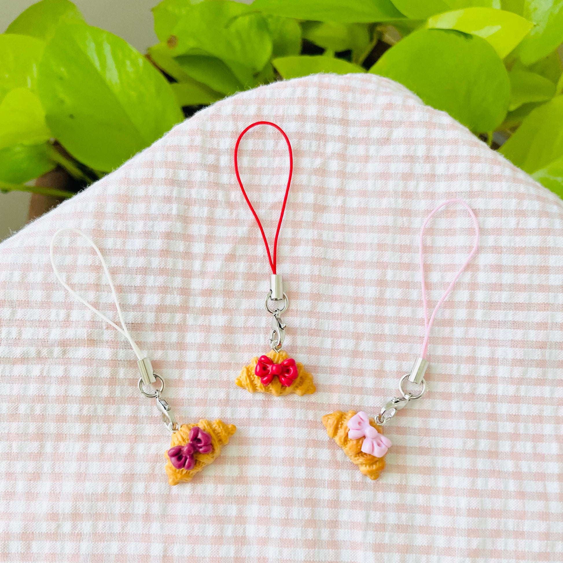 Porte-clés / attache de téléphone croissant avec son petit noeud - Collection Saint-Valentin
